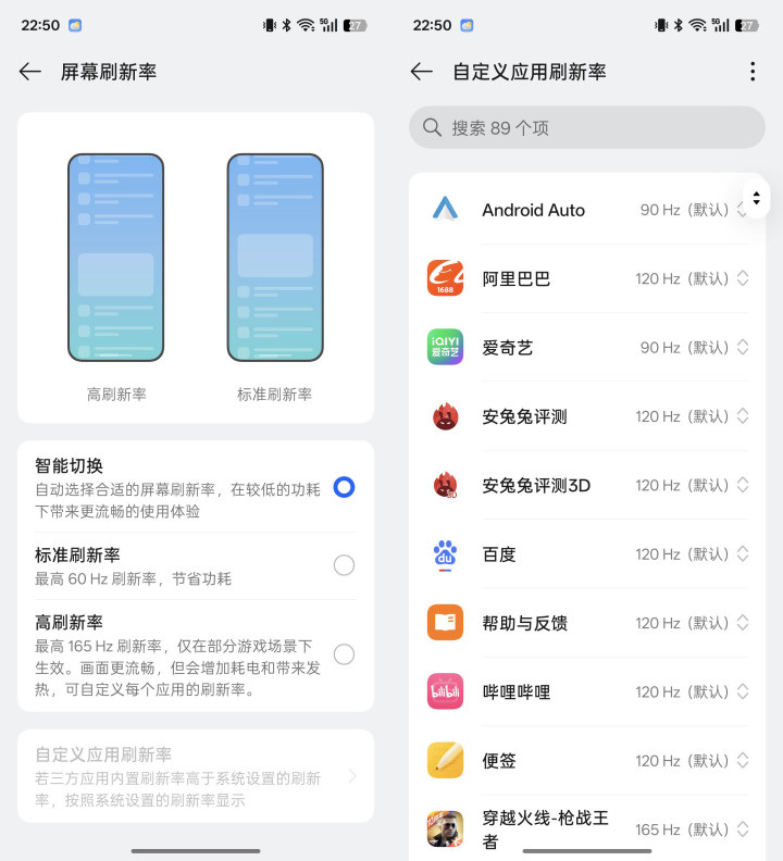 165Hz超高刷新率是其中枢亮点,默许为根据软件自动调理的智能刷新率,也相沿60Hz/165Hz固定转移,兼顾流通度与功耗;也可以奏凯开高刷,然后设定不同愚弄的刷新率。