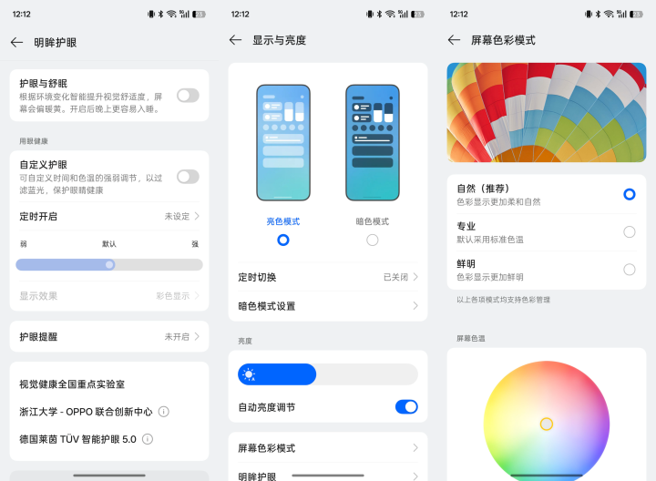 在护眼方面,一加Ace6T相沿3840Hz超高频PWM调光本事,和谐与浙大量度研发的“明眸护眼”本事,硬件级减少蓝光伤害(上图右侧护眼可以看到四个认证)。