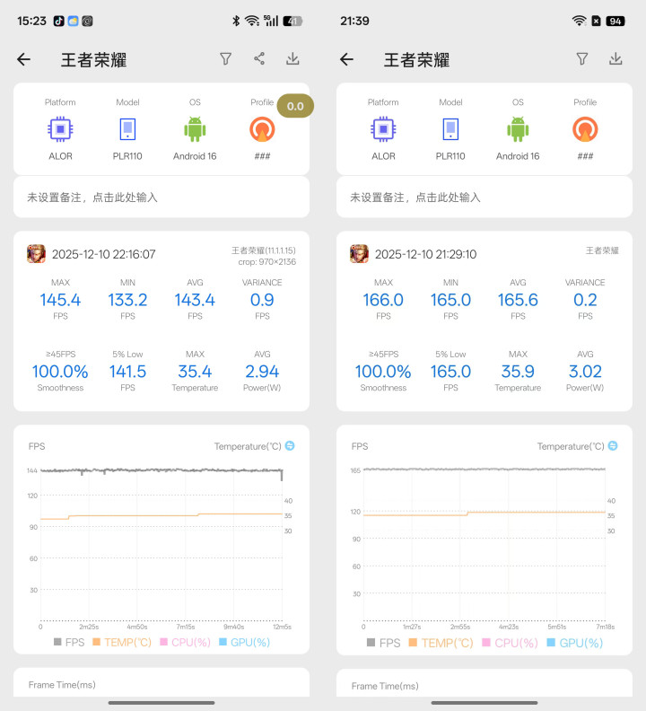 《王者荣耀》当今也相沿144Hz了,实测树立144帧后开启游戏,游戏平均帧率143.4帧,5% LOW帧141.5帧,妙技开释、团战拉扯时的跟手性极佳,触控蔓延完全感受不到,字据阐述并莫得出现操作与画面脱节的情况。